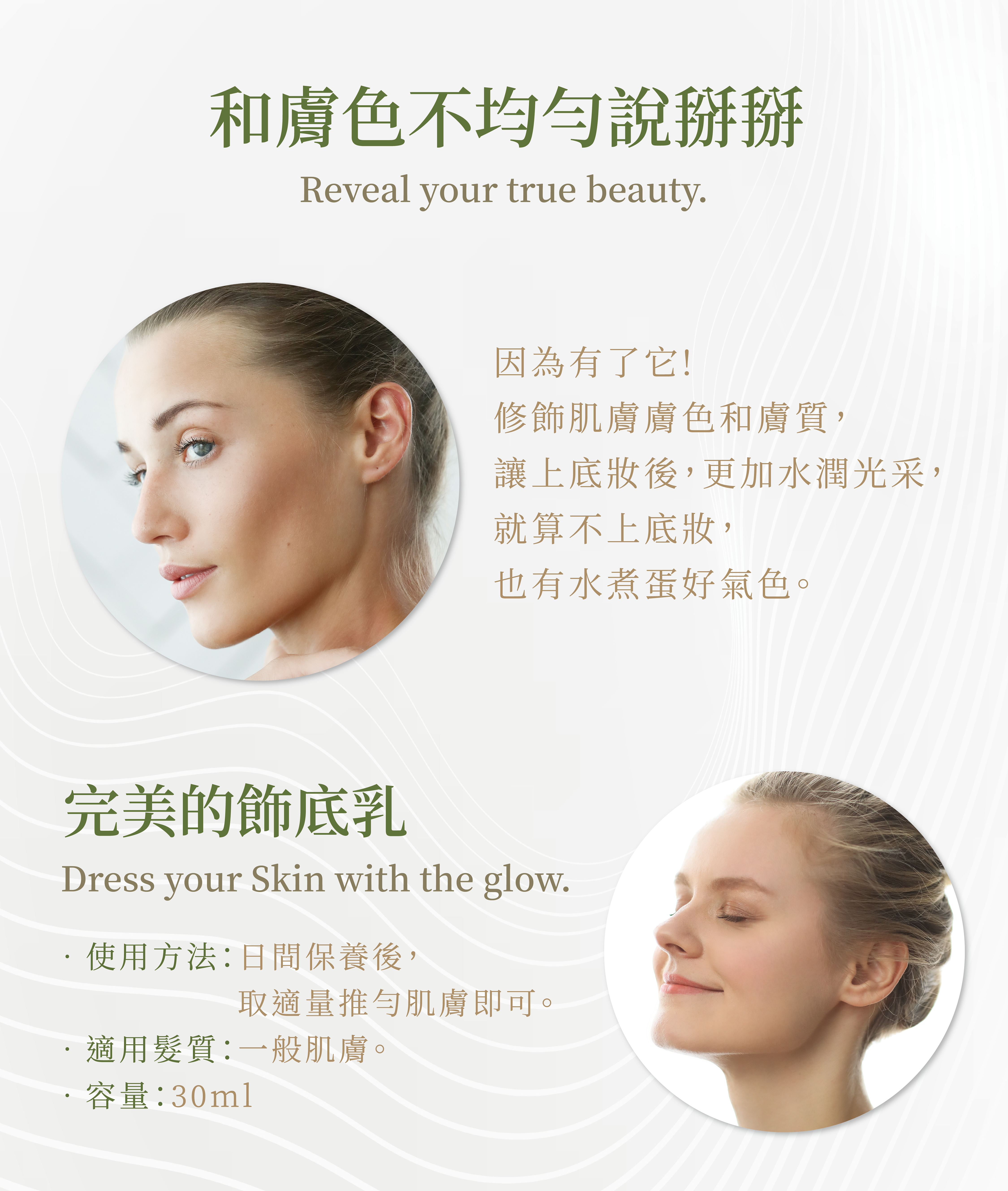 妝前使用加強保濕,添加成膜因子,不用擔心汗水影響底妝。協助後續底妝貼服更自然同時,還可以初步修飾膚色不均勻的問題,提亮肌膚整體色澤,讓你的肌膚在上妝後更有光澤感。