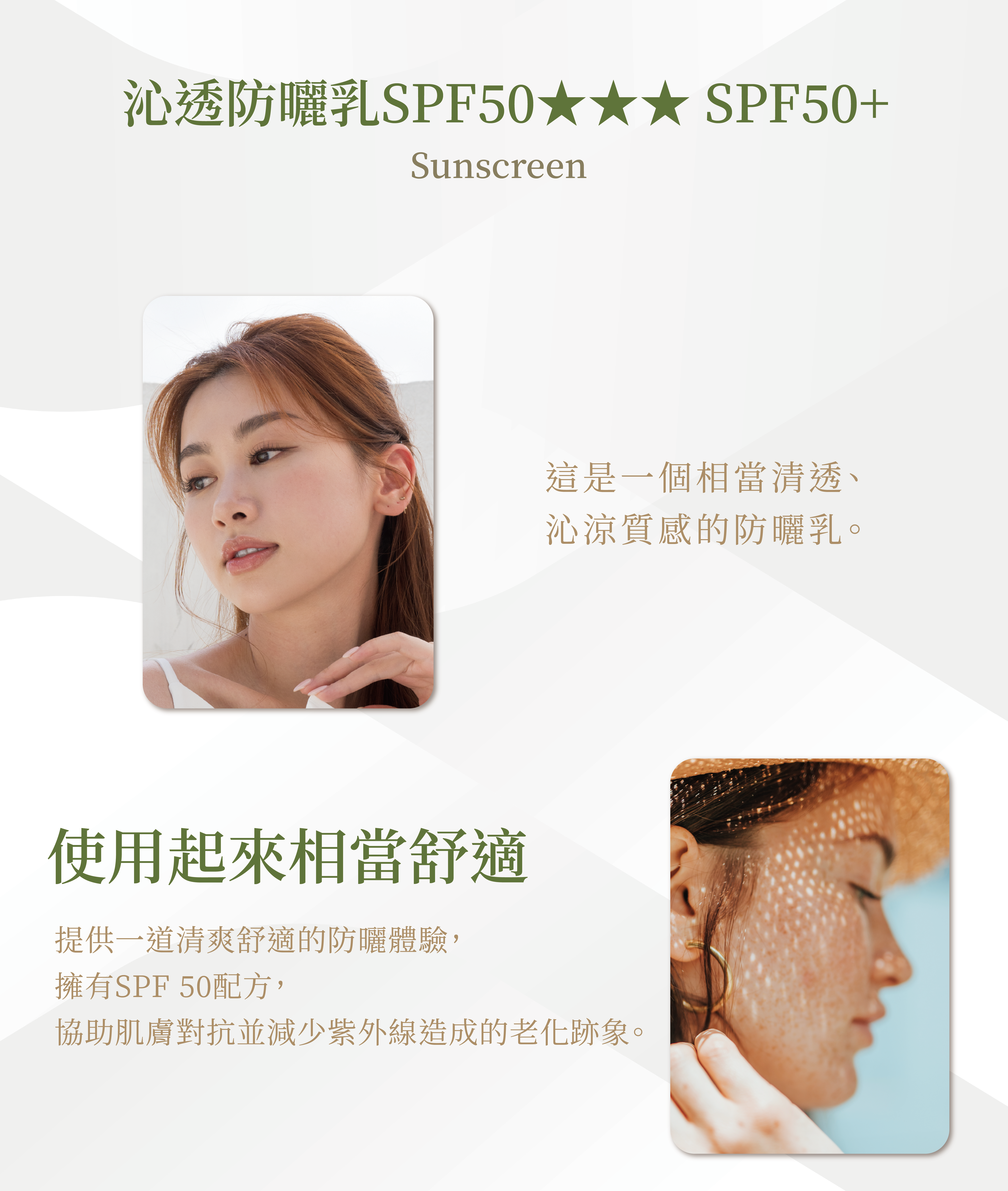 清透、沁涼質感的防曬乳,延展性佳,提供一道清爽舒適的防曬體驗,SPF 50配方,協助肌膚對抗藍光、空氣汙染、紅外線等日常外界侵擾、並減緩紫外線造成的老化跡象。