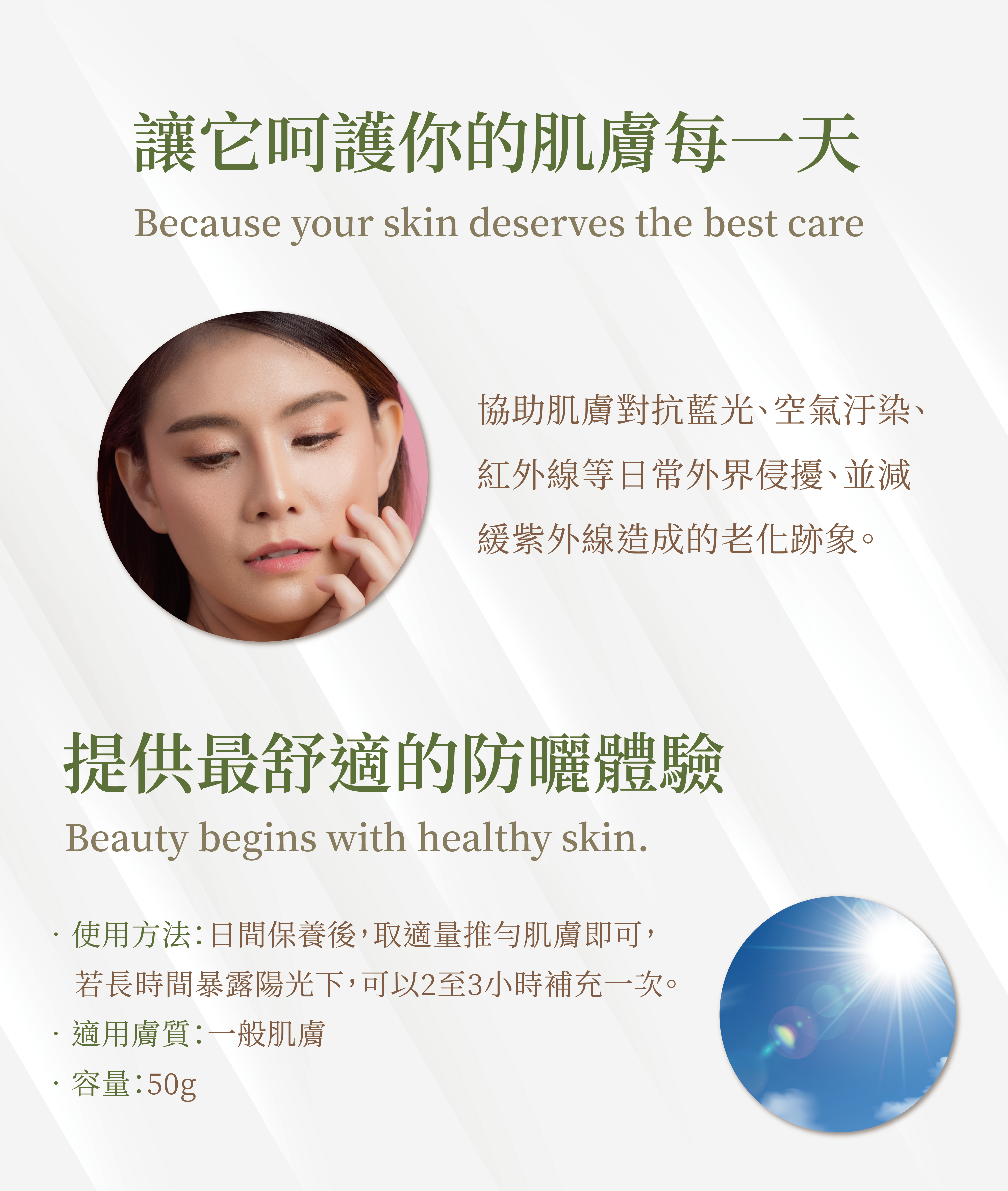 •使用方法:日間保養後,取適量推勻肌膚即可,若長時間暴露陽光下,可以2至3小時補充一次。
